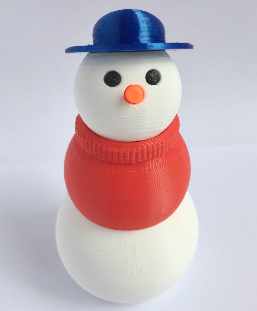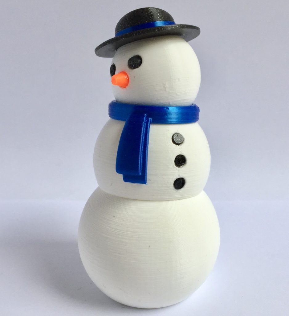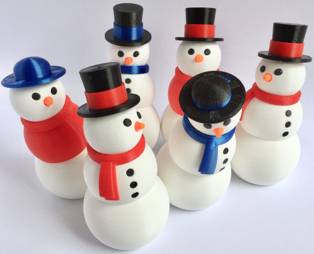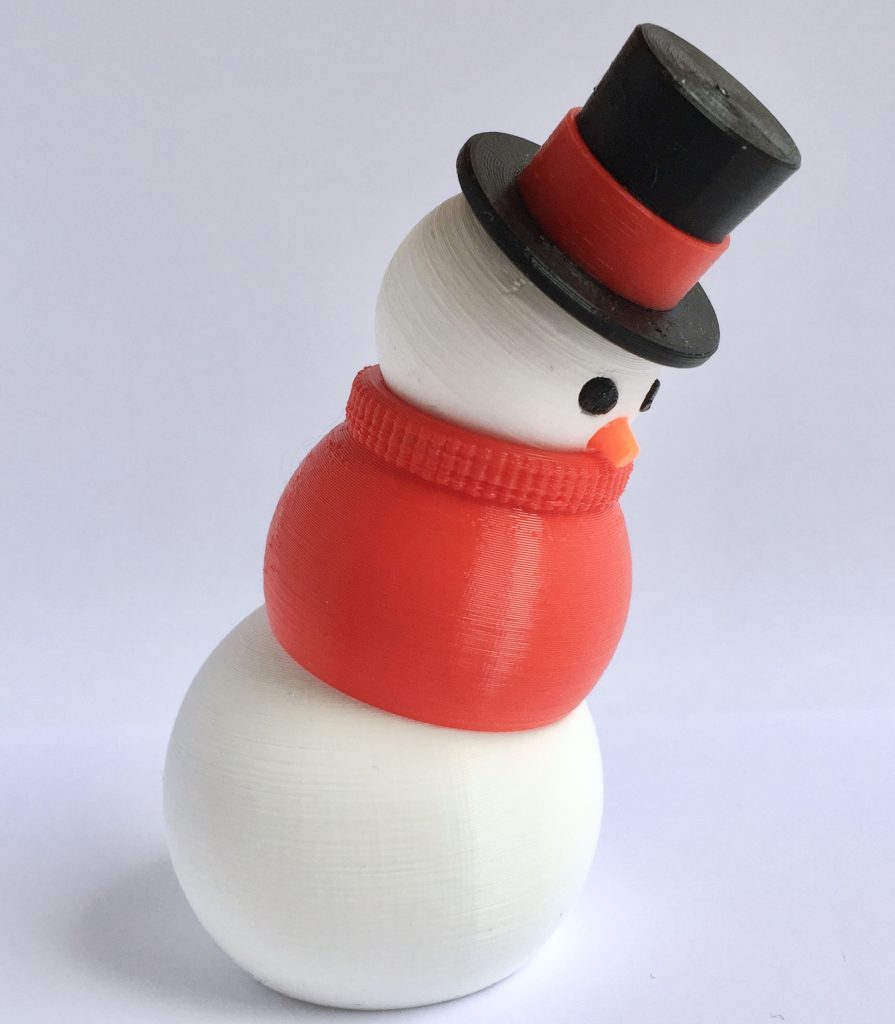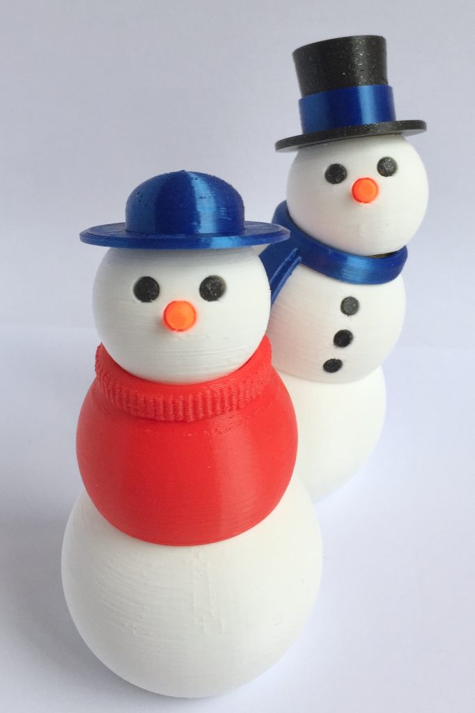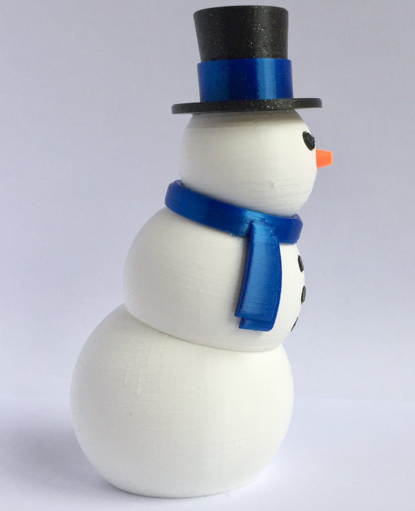 These adorable snow-people are almost fully 3D-printed and are extraordinarily posable and customisable thanks to their intelligent, modular design and the elastic holding them together. Full credit for this wonderful design goes to 3D Printy on Printables.com. I am extremely grateful to them for distributing their design under the Creative Commons – Attribution licence which lets people print and sell their design as long as they provide attribution.